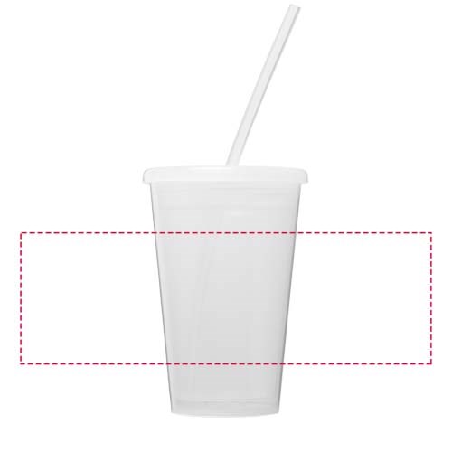 Dubbelwandige doorzichtige geïsoleerde beker. Geleverd met een PE rietje. Volume 350 ml. Gemaakt...meer