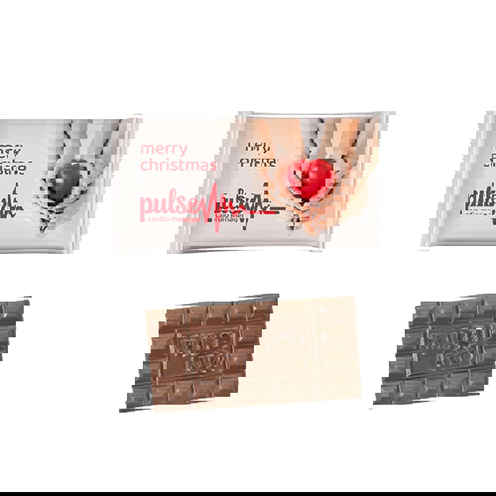 Midi logo chocoladereepje in een papieren flowpack, ca. 25 grammeer