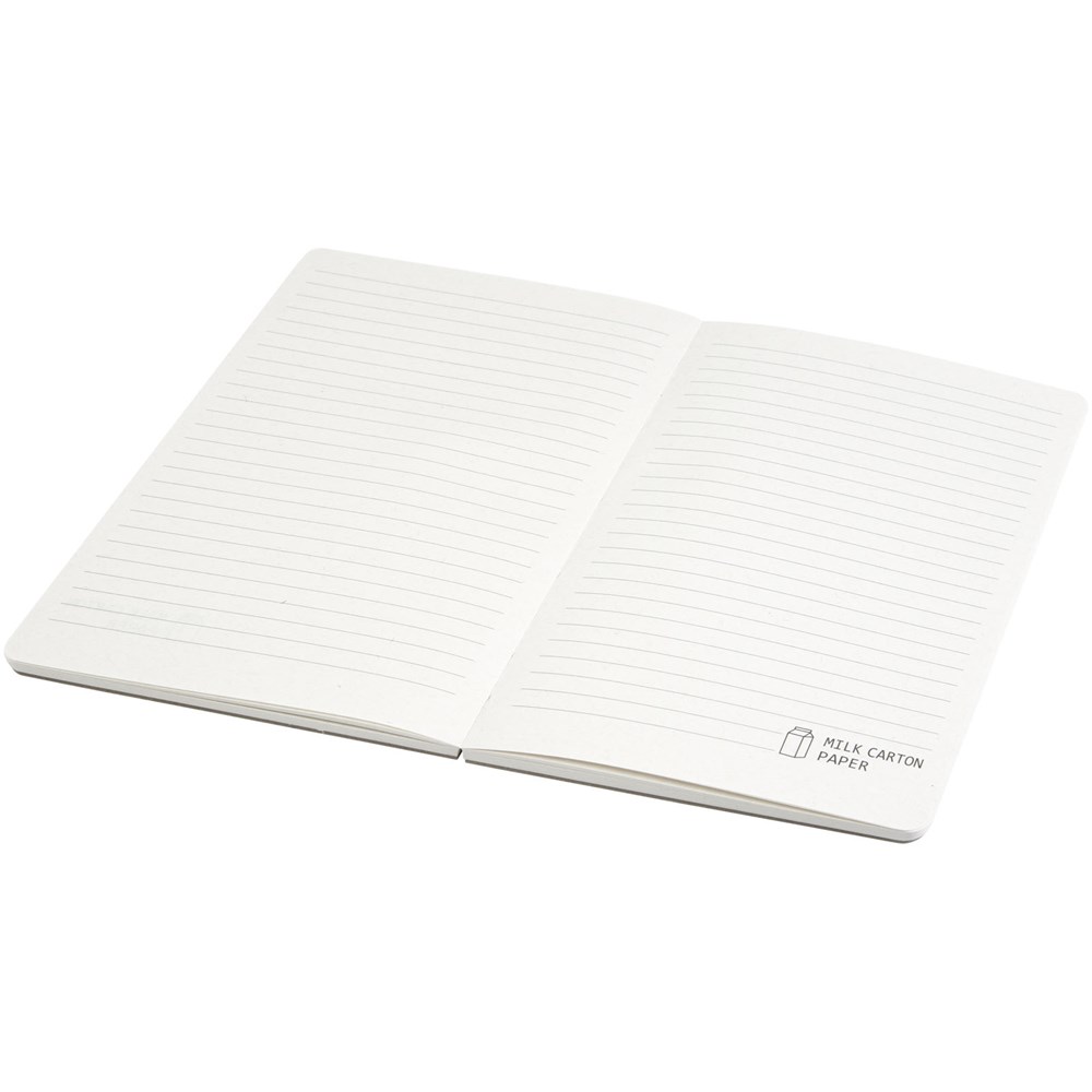 A5-formaat notitieboek zonder harde achterkant met 80 gelinieerde vellen van 80 g/m², gemaakt van gerecyclede melkpakken (tot 70%). Gebruikte melkpakken worden ingezameld, gesorteerd, verwerkt en omgezet in papier, waardoor afval echt iets nuttigs wordt.