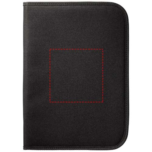 Portfolio met ritssluiting, documentvakken en notitieblok met 20 pagina's gelinieerd papier. Pen en accessoires niet inbegrepen.