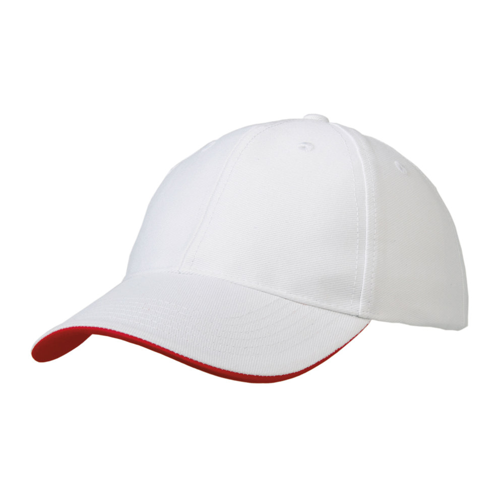 6 panel strap cap met frontvoering en contrastlijn op sluiting. Medium profile. Metalen buckle sluiting met grommet. Uitgevoerd in cotton, heavy twill