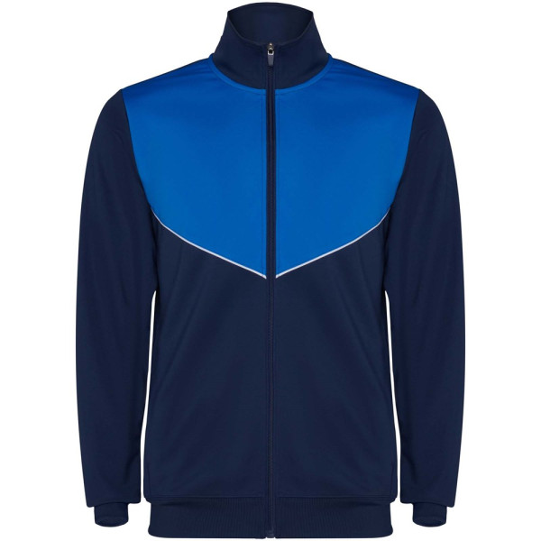 Trainingspak van lichtgewicht en elastische stof. Jack met contrasterende kleur en stiksels op de...meer
