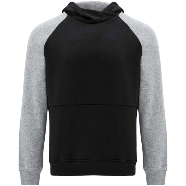 Tweekleurige unisex hoodie. Capuchon met gekruiste hals en metalen oogjes. Contrasterende binnenkant van de capuchon, trekkoord en raglanmouwen. Kangoeroezak. Manchetten en zoom van 1x1 ribgebreid elastaan. Verwijderbaar label.