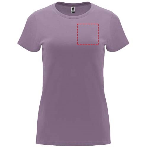 Getailleerd T-shirt met korte mouwen voor dames. 1x1 geribde ronde hals. Versterkte bedekte naden in de kraag. Verwijderbaar etiket.