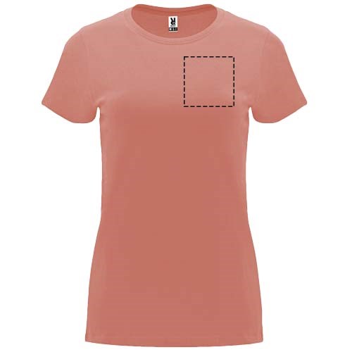 Getailleerd T-shirt met korte mouwen voor dames. 1x1 geribde ronde hals. Versterkte bedekte naden in de kraag. Verwijderbaar etiket.